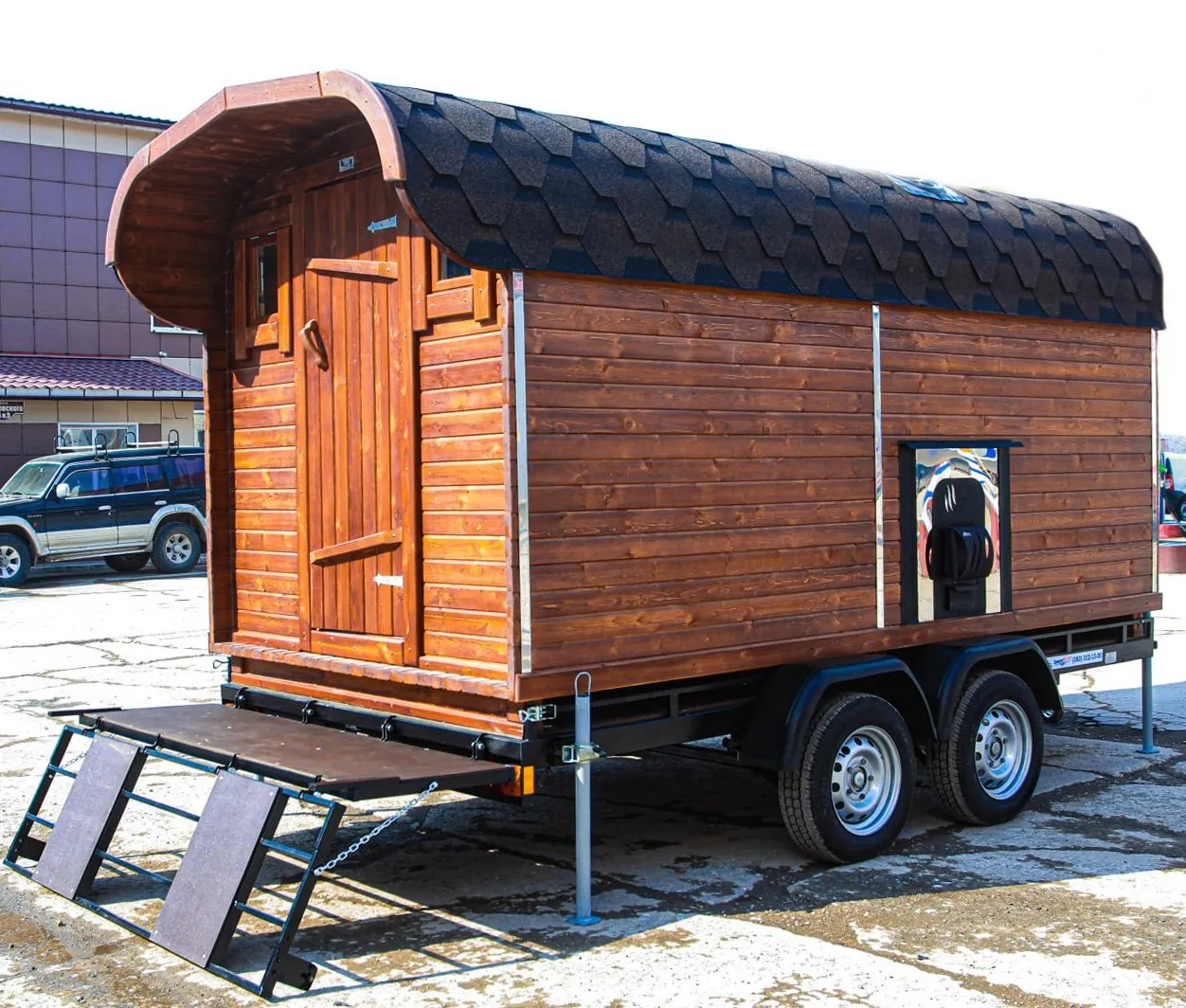 Баня-бочка «Танк» из кедра 5х2,2 метра (вариант 1) Кедровая баня, вылепленная в очертаниях гусеницы танка – это не просто архитектурный каприз, это ода инженерной мысли, сплавленная с любовью к парной традиции. Идея, возникшая, вероятно, в горячем споре между почитателями милитаристской эстетики и апологетами телесного релакса, обрела плоть в ароматном кедре.