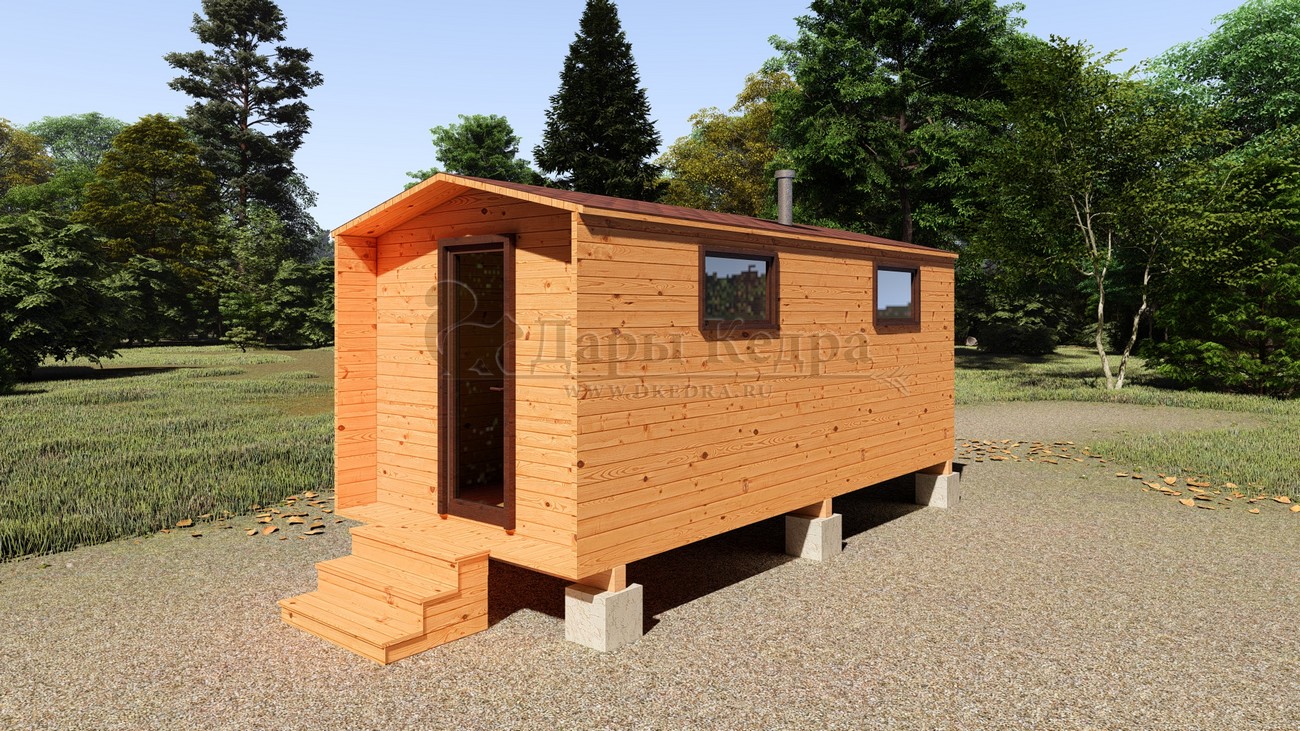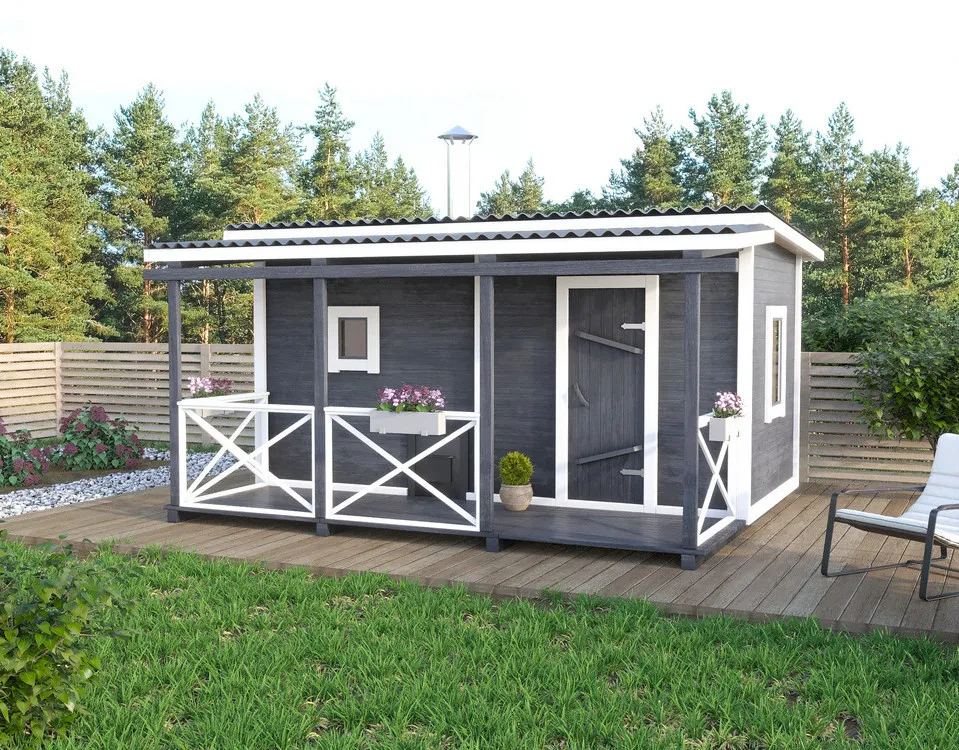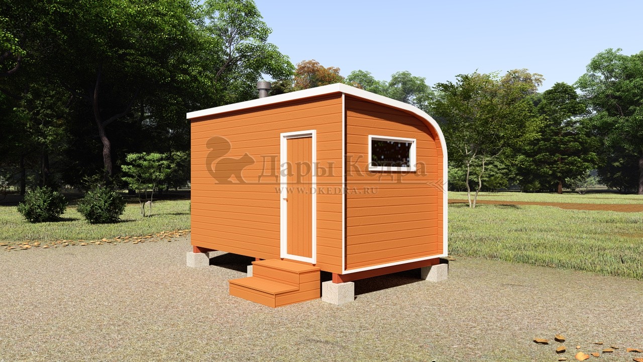 Каркасно-щитовая баня из кедра «Мини» с верандой Это классическая прямоугольная модель бани с двумя отделениями: парилкой и раздевалкой. Для удобства пользования раздевалка оснащена лавочкой и вешалкой. Парилка оборудована двухуровневым открытым полком и печью. За счет небольшой конструкции баня нагревается в течении 30 минут. На просторной веранде можно оставить вещи или отдохнуть после парения. Каркасно-щитовую баню можно заказать как в готовом, так и в разборном варианте. В разборной модели готовые щиты из кедра быстро собираются в полноценное строение, что также позволяет исключить лишний строительный мусор. Такая баня не требует полноценный фундамент, поэтому при необходимости ее можно перенести в другое место. Обращаем Ваше внимание, что в стандартную комплектацию бани входит полок открытого типа в парной. Дополнительно можно заказать полок закрытого типа или лавку! Древесина кедра насыщена эфирными маслами и фитонцидами, которые активируются при воздействии температур. Таким образом, парение в каркаско-щитовых банях из кедра становится еще полезнее.