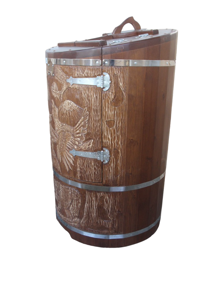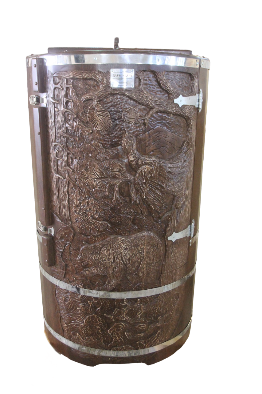 Художественное оформление на лицевой части, сбоку или на всей площади кедровой бочки по вашему эскизу.