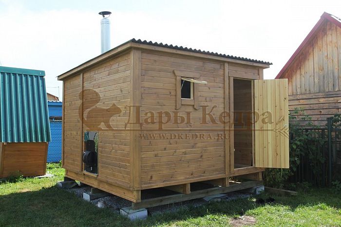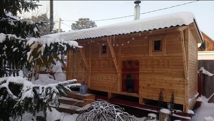 - Металлокаркас на сваях. Такое основание мобильной парной рекомендуется делать там, где грунт нестабильный, выпадает много осадков. При желании снаружи его можно обшить деревом или яхтенной доской.