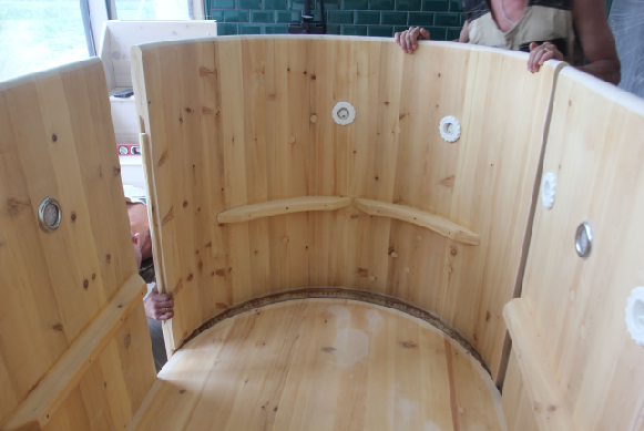7. Осторожно постукивая по стенкам изнутри изделия в направлении от центра, разобрать купель на части (дно + боковые-вертикальные стороны).