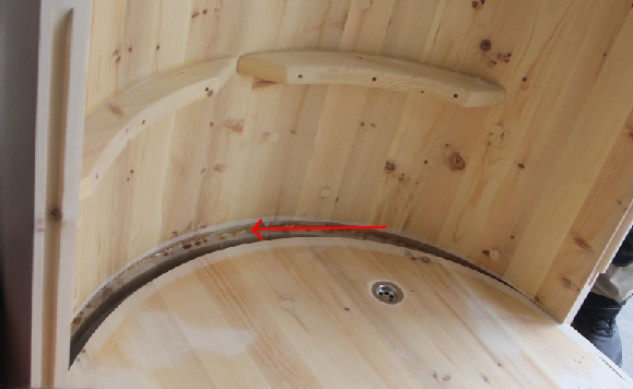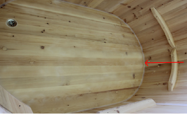 12. Внутри купели закрепить на саморезы сиденья (в каждое отверстие), установить внутреннюю лестницу и закрепить на саморезы, все отверстия закрыть пластиковыми заглушками. Изделие собрано и готово будет к эксплуатации только по истечении двух дней! Сразу после склейки купель наполнять водой нельзя!